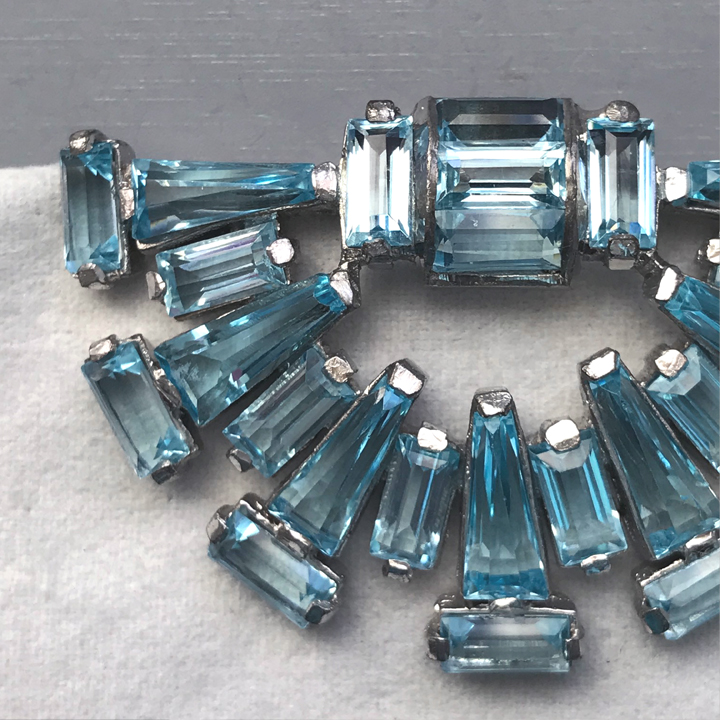 DEROSA fur clip with a large brilliant blue unfoiled center rhinestone and