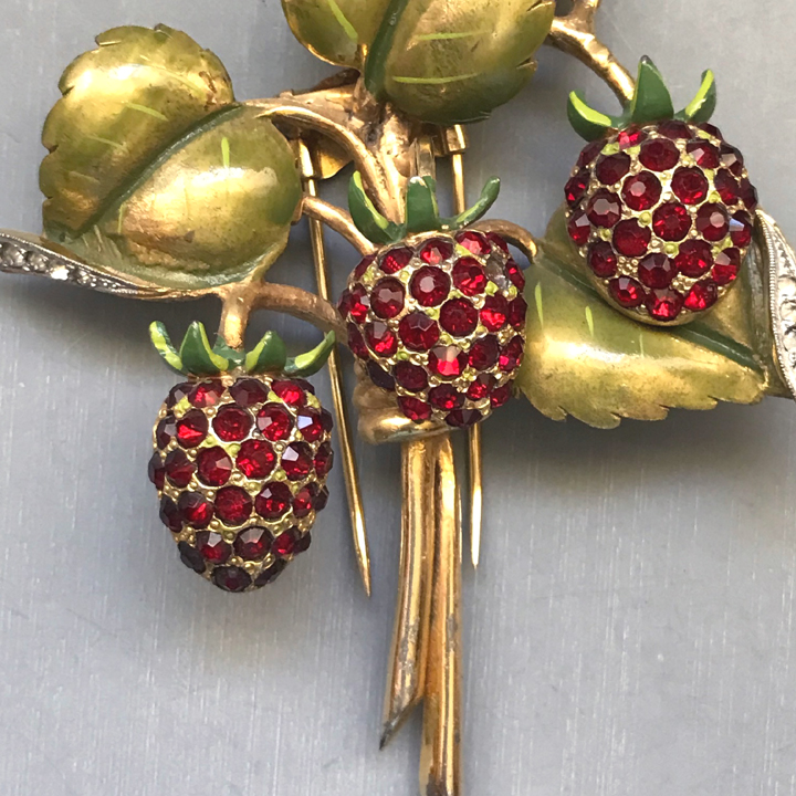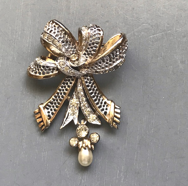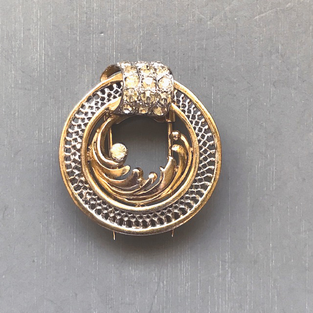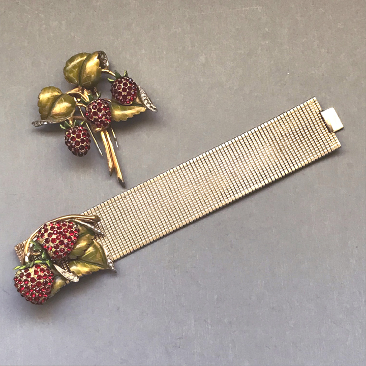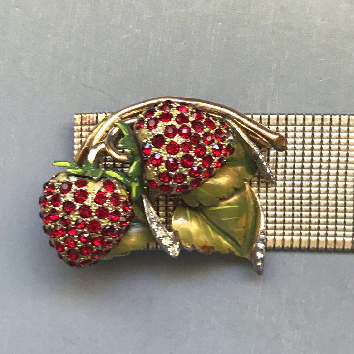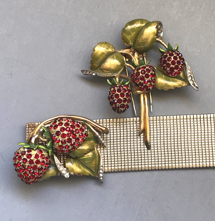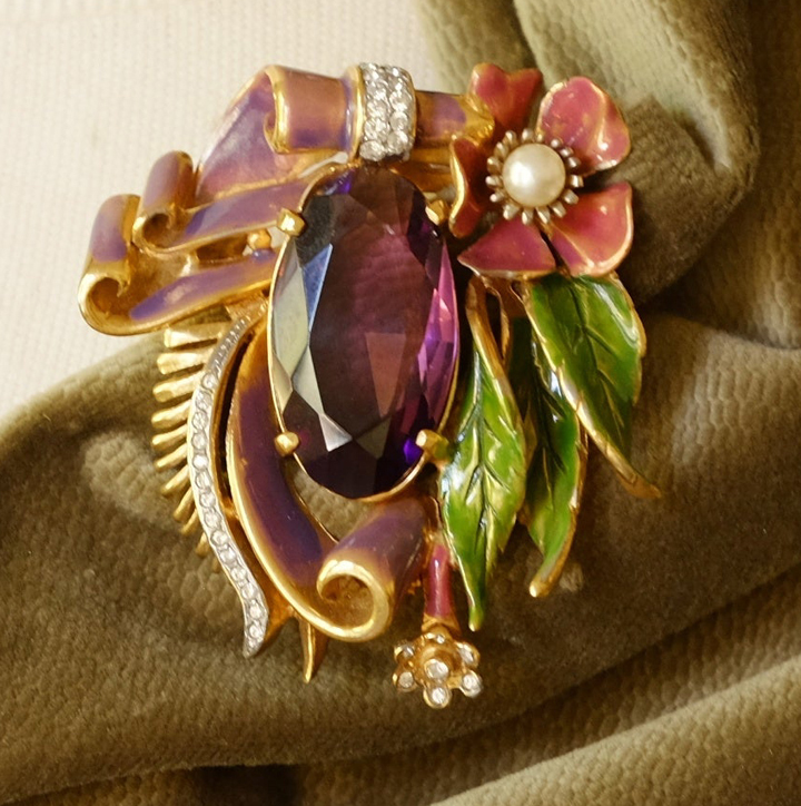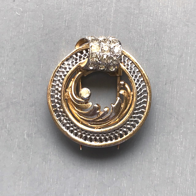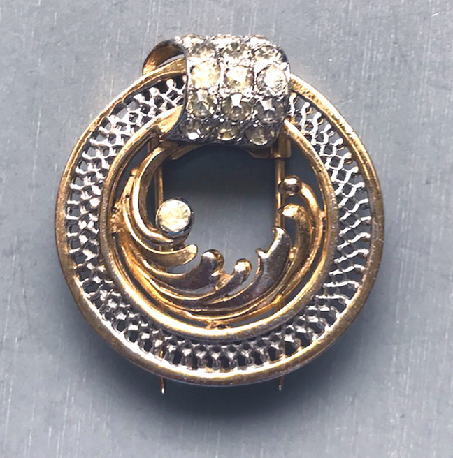 enhanced by the way the rhinestones are set, and this was made in about 1943. It is signed "R