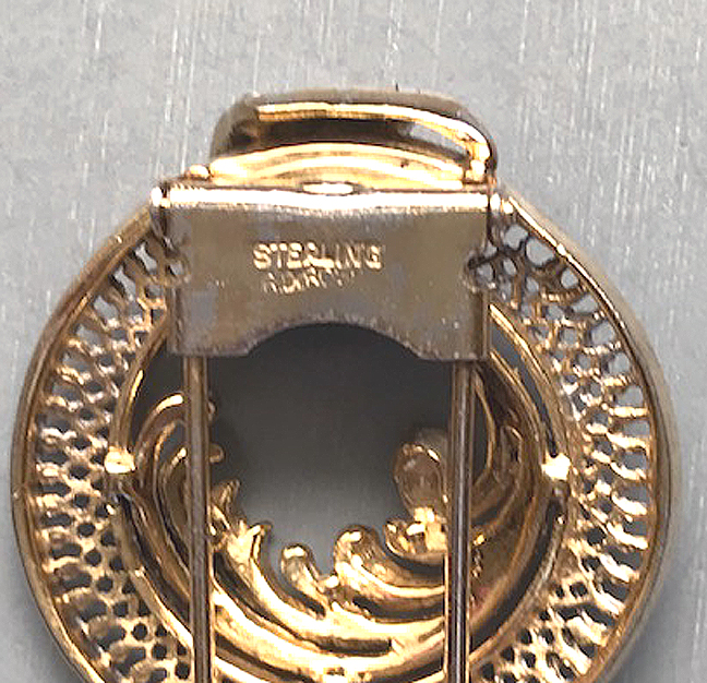 rhinestone accents, 2-1/4". This is signed "R DeRosa sterling"
