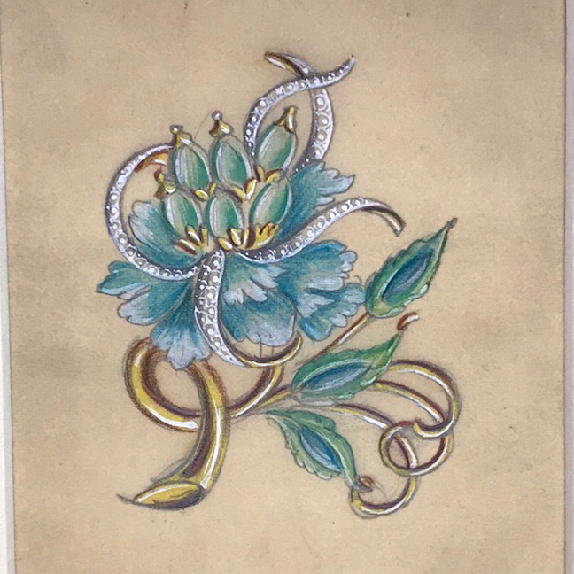 To see some of the wonderful original hand painted design illustrations of DeRosa Jewelry, click
