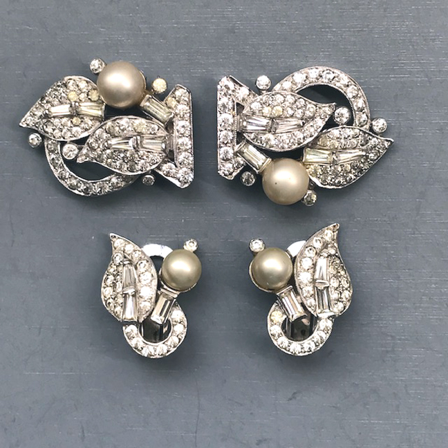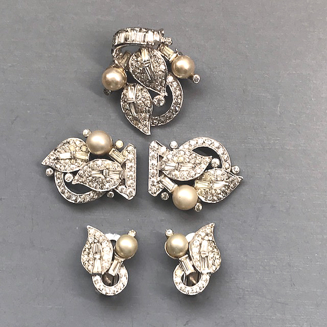 rhinestone accents, circa 1945, 3".
