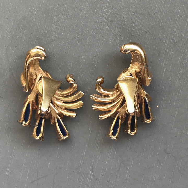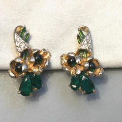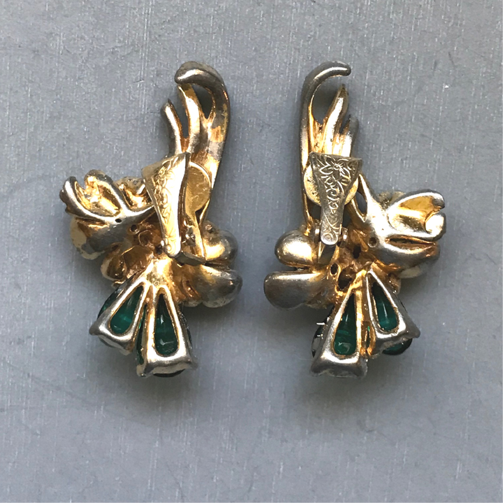made in the 1940s, the brooch is 2-1/2" and the clip back earrings are