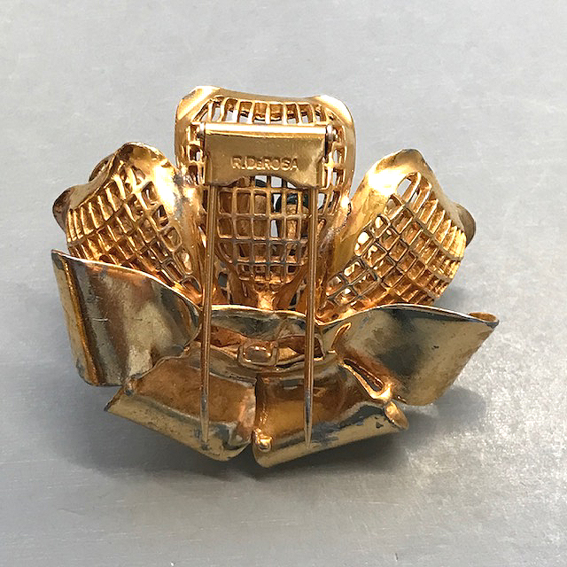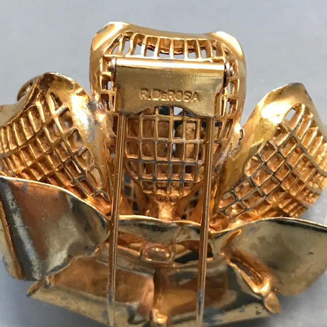 of the clear rhinestones. It is signed "R DeRosa" on the back. So far I have only seen this design