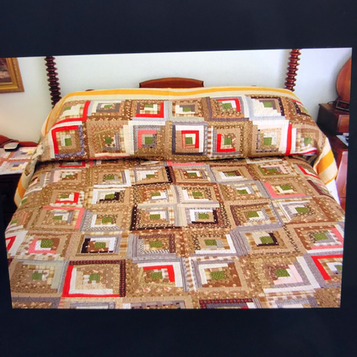 QUILT Victorian Log Cabin quilt in brown, red, green and cream with a