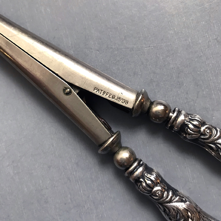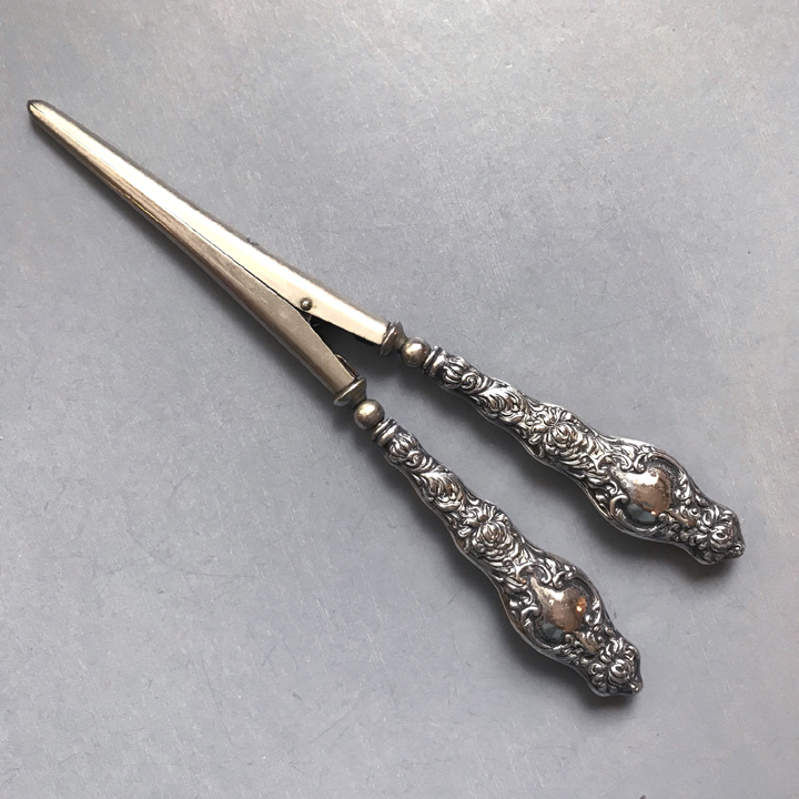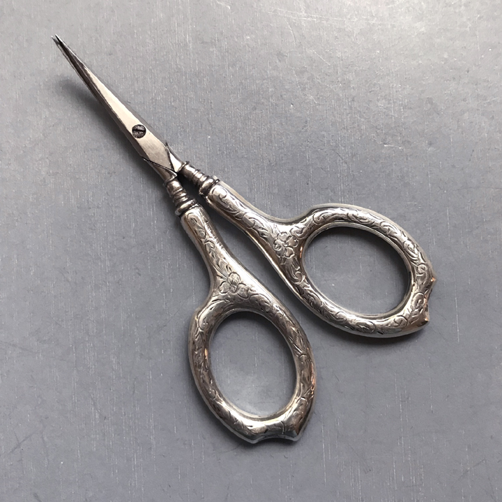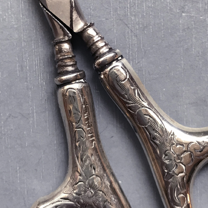 STERLING silver antique fingernail scissors with etched flowers and scrolls