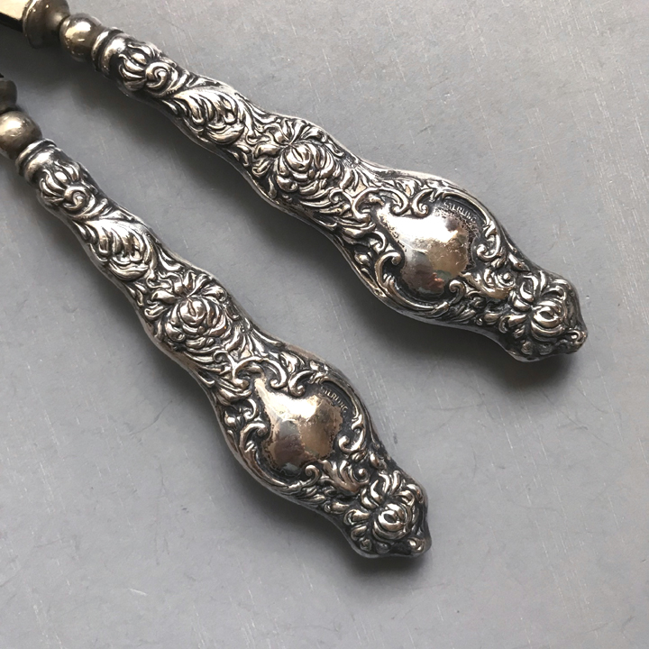 designs on both sides, marked "sterling" 4" long. These are sharp and cut