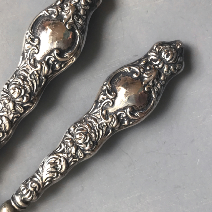 designs on one side, 4" long and marked "sterling". These are sharp enough