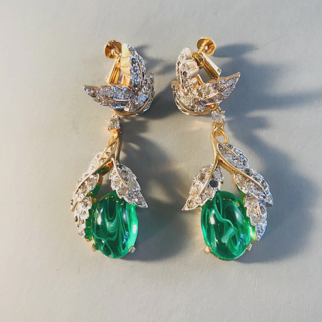 earrings, marked "Made in France", 20" length with 2" earrings, circa 1980. This European set looks