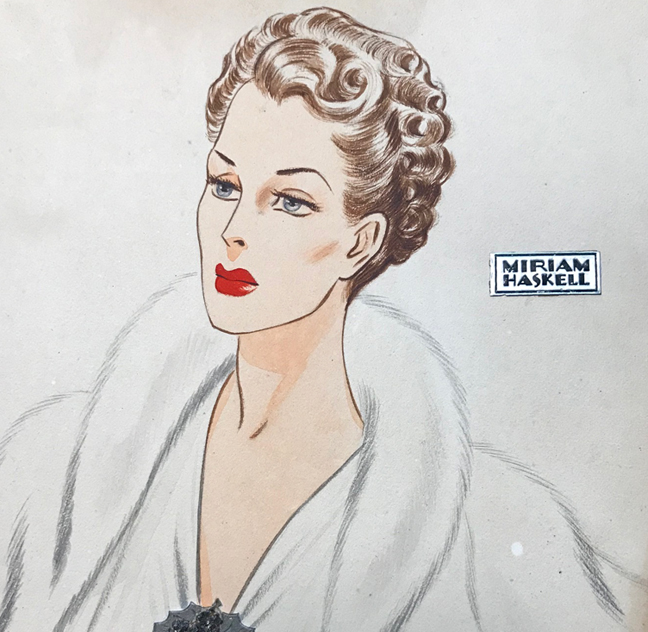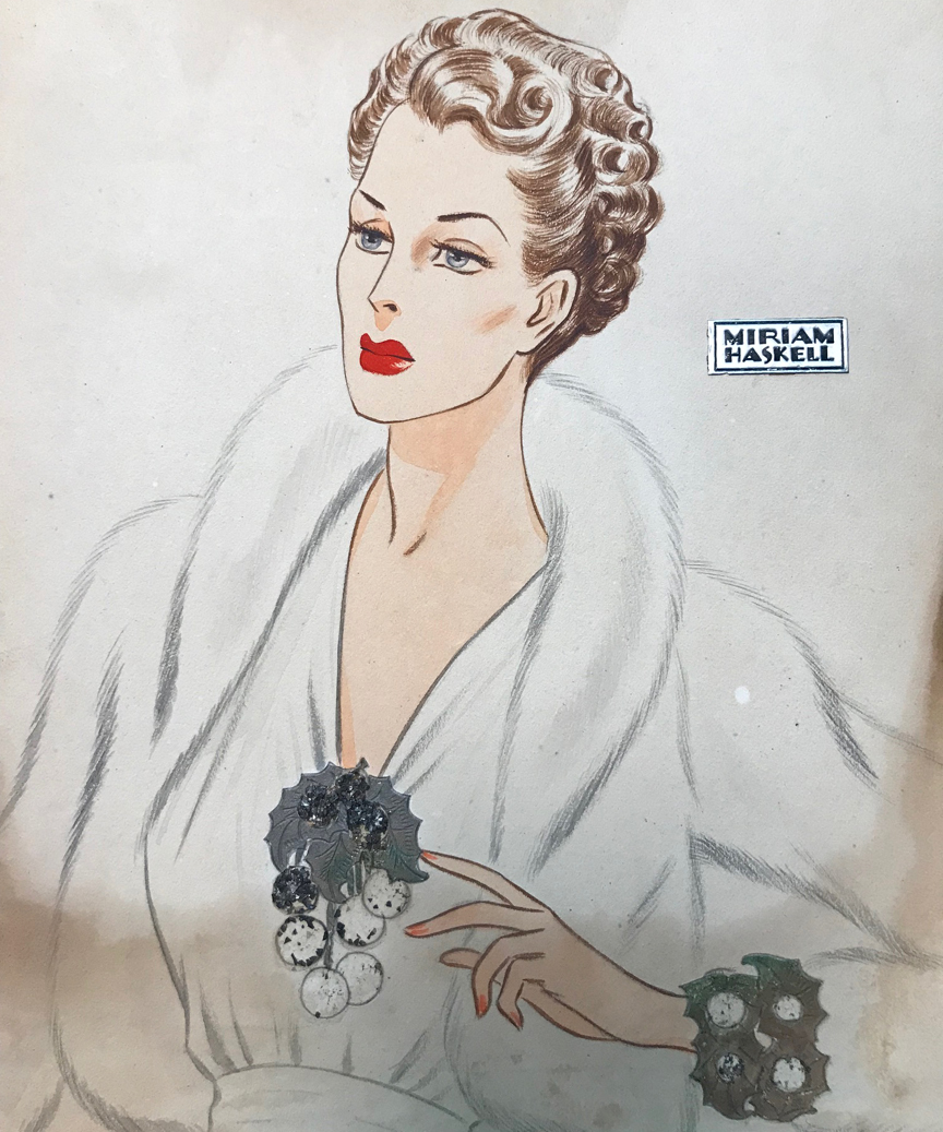 promote Miriam Haskell Jewelry in shops and publications, circa 1930-40s.