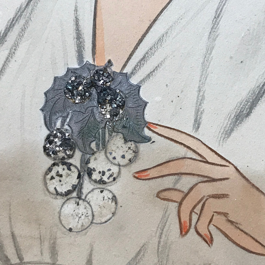 glossy, hand signed piece illustrating a Frank Hess clip and bracelet, it is