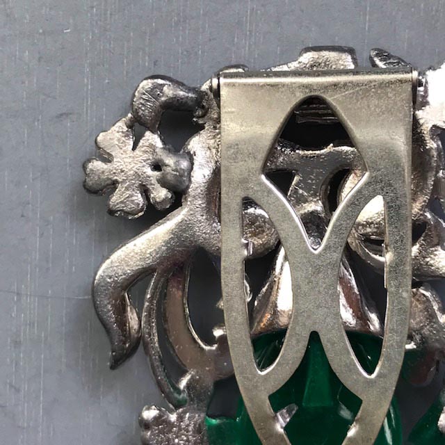 DECO French paste and sterling silver brooch with a large richly emerald