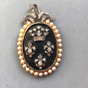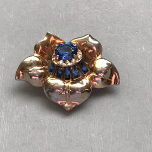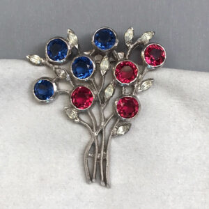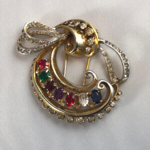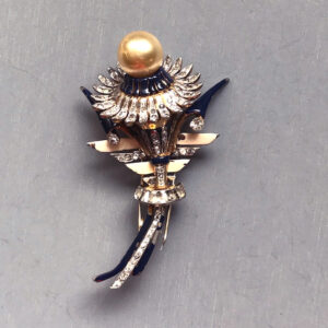 We buy and sell DeRosa necklaces, bracelets, brooches, clips, earrings and parures, as well as the design art work they used in the 1930-40s. It is a favorite maker for me and so I collect it as well, particularly those 1930-40s pieces. Their use of multiple layers and high quality rhinestones combined with their enamel work is masterful!