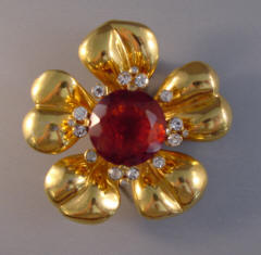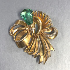 Ralph DeRosa jewelry is known for its three-dimensional layered designs, high quality components, and translucent enameling. DeRosa jewelry designs include floral, figural, retro motifs, and designs inspired by the precious jewelry of the era. DeRosa jewelry is not easy to find because they didn't make many of each style, but is certainly more than worth the search. After years of collecting and selling this wonderful brand, I have found that the majority of their pieces were signed, so beware unsigned attributions where there is no reference material to substantiate it. This New York City firm was at 404 Fourth Street in New York City and did jewelry from the mid-1930's until the 1970's. Like many jewelry makers, their 1940-50's jewelry is their best, in my opinion. DeRosa is one of my very favorite makers and I collect it myself.