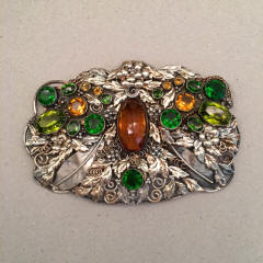 The name HOBE is synonymous with quality, especially in their earlier pieces. Although they made buckles and accessories in the late 1800s, their costume jewelry pieces from the 1930-50's years are my personal favorites. Their gilt wire-worked designs and fabulous stones, sometimes semi-precious stones, create a unique old-world style. The purse frames, done in conjunction with Josef, makers of fine purses, are works of art.