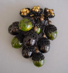 | FALL is a favorite season with all its lovely colors and what more exemplifies Fall than colorful leaves and acorns? Jewelry with natural motifs goes way back in history and has been made from everything from precious gems set in gold to rhinestones to carved wood and bakelite.