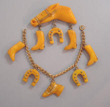 | Bakelite jewelry was at its zenith from the late 1920s till the start of WWII in 1942. The need for inexpensive fun during the Depression era of the 1930s gave the whimsy, color and cheerful look of bakelite jewelry the perfect market. The sophisticated Deco and machine age look of some of the pieces made them fashion favorites.