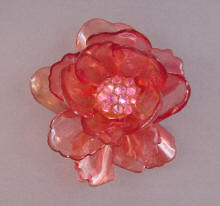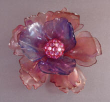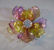 | Just for fun, the colorful mid-century transparent plastic flower brooches and earrings add a pop and fun to any outfit for Summer. Their rhinestone centers and roughly 3 inch size makes them hard to ignore. Wear them singly or in pairs. We just received a small group, so do take a look before they are gone HERE!