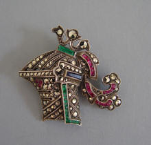 Alice Caviness, designer and jewelry maker starting in about 1945, imported German marcasite and enameled jewelry set in sterling in the 60s. You can see some examples in her circa 1965 catalogue by CLICKING HERE. It is diminutive and colorful, and has a strong following of collectors. If you would enjoy adding some marcasites to your own collection, pieces for sale can been seen at Morning Glory Jewelry where we have bracelets, brooches and rings.