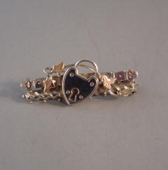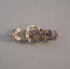 These intricate symbolic pins have been called by several names including Sweetheart Pins, Symbol Pins, Good Luck and Sentimental jewelry. Usually made of sterling or sterling with rose and/or yellow gold overlay, they are each a small study in the symbolism seen throughout Victorian life. Most of these were made from 1880s to circa 1915. Many of them are hallmarked for the maker, city and date, but many are not.