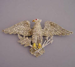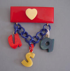 | Also fun are the patriotic people pins... sailors and soldiers. And another category is the jewelry worn by the mothers and sweethearts left behind, sometimes called "sweetheart jewelry". A related branch of jewelry includes the pieces that soldiers brought home from overseas... both hand made items and foreign jewelry. From hand etched coin bracelets to European cameos and Oriental jewelry, soldiers families treasure things brought back from "over there". Â So much jewelry to enjoy and share! PATRIOTIC jewelry can be purchased HERE.