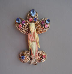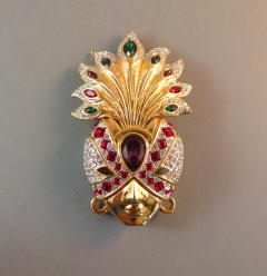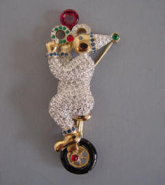| Jewelry is brilliant, beautiful, and can be expressive of your own personality in a unique way. It can also express the era in which it was made. But one jewelry type has lasted for decades and decades is figural jewelry. People, animals, and other natural things can all be the subjects for this style. But one of the most fun motifs is people and peoples things. A Hobe queenly brooch, a Swarovski face with headdress, or a juggling clown all make wonderful subjects.
