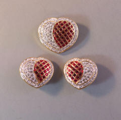 Heart motif jewelry is a classic, found in almost every jewelry catalogue no matter what the date. The material from which it is made may change with fashions of the era, but the motif itself remains the same as you can see in these examples. If you would like to see some wonderful HEART jewelry you can purchase, please click HERE. For lockets of all kinds click HERE. And to see heart jewelry in our reference gallery, please click HERE. |