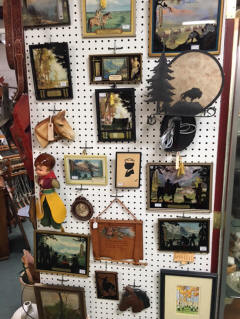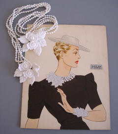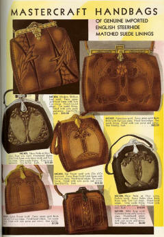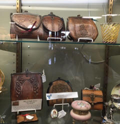 To purchase MIRIAM HASKELL jewelry please click HERE. | MIRIAM HASKELL ~ WWII era wooden beads and leaves | Wood was another alternate material used during the 1940s WWII years. Natural or dyed, in small seed bead sizes and larger bells, and sometimes combined with other materials as well, these are great fun. Wood elements came in heart and star shapes, and larger pieces were carved to made flowers and leaves. Creatively fashioned into acorns, combined with everything from coral to colorful glass buttons to sea shells, these are cheerful and a joy to wear and display. Enjoy buying our HASKELL wood jewelry HERE. Read more about Miriam Haskell Jewelry at HASKELL ART WORK & ADVERTISING. And for whats new on Morning Glory this week, please click HERE. | FEATURE: MORE at the Antique Connection Mall | At our ANTIQUE CONNECTION MALL in Albuquerque, New Mexico, we have a wide variety of items all the time. We have collectibles, like Arts & Crafts leather purses and vintage silhouettes, shown at right. Youll also see a marvelous selection of antique and vintage jewelry, including some of the most rare pieces as well as everyday fun things to wear. We have man-tiques like mounts, signs, Coco-Cola, Marilyn Monroe, hunting and fishing gear and duck calls. There are also kitchen collectibles like Jadite, Fiesta, Bauer, LuRay, 40s-50s painted glasses, cooking and baking gear and linens. Art work and puzzles, toys and dolls... so many things to see and enjoy. What a fun way to brighten your kitchen! And dont miss the furniture of all kinds and eras. About 60 dealers and over 10,000 square feet of clean, well-lit mall... and always friendly welcoming and knowledgeable staff and dealers to help you. There is SO much more at the Antique Connection Mall, and new things come in every day. | | |