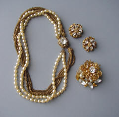 Made by Kramer in the 1960s, AMOURELLE jewelry looks like a cousin... and sometimes a twin... to Miriam Haskell jewelry. That is because it was designed for Kramer by former Haskell head designed Frank Hess. Wonderfully designed, delicately worked, and easy to wear, it can unfortunately be very difficult to find. Not nearly as many pieces were made as there were Haskell things.