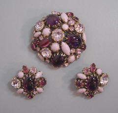 Some of my favorite purple pieces are seen to the right here. The wonderful striped cabs bracelet, so distinctive yet east to wear, and the amazing Swarovski necklace in the original box, so rare. And then the Schreiner, yummy!