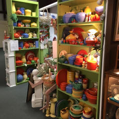 The ANTIQUE CONNECTION MALL in Albuquerque, New Mexico, has a wide variety of items all the time. We have genuine antiques, furniture, Asian and smalls as well. We have collectibles, like Arts & Crafts leather purses and vintage silhouettes. You'll also see a marvelous selection of antique and vintage jewelry, including some of the most rare pieces as well as everyday fun things to wear. We have man-tiques like metal signs, Coco-Cola, Marilyn Monroe, hunting and fishing gear and duck calls. There are also kitchen collectibles like Jadite, Fiesta, Bauer, LuRay, 40s-50s painted glasses, cooking and baking gear and vintage linens. Art work and puzzles, toys and dolls... so many things to see and enjoy. What a fun way to brighten your kitchen and your home! And don't miss the furniture of all kinds and eras. About 60 dealers sell here, and they are often at the mall to chat about what they enjoy. There's over 10,000 square feet of clean, well-lit mall... and always friendly welcoming and knowledgeable staff and dealers to help you. There is SO much more at the Antique Connection Mall, and new things come and go every day.