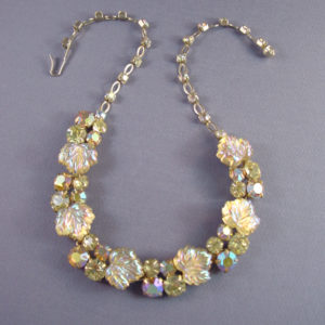 MIRIAM HASKELL white glass leaves and beads necklace with a lovely wedding bouquet look
