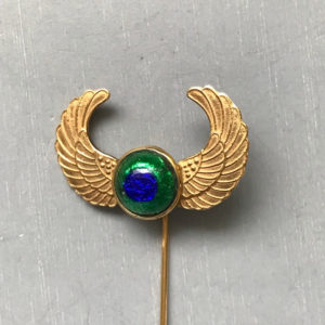 PEACOCK EYE antique Egyptian motif brooch with two Sphinx and wings