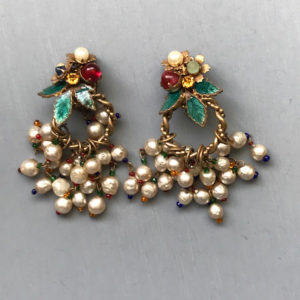 EARRINGS with clear unfoiled marquis-shaped rhinestones set in a black japanned setting