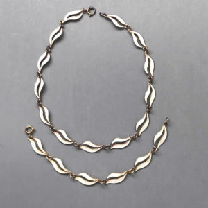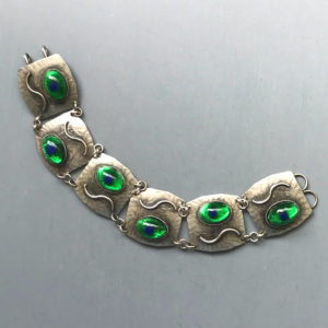 DAVID ANDERSEN, Norway, gold washed sterling bracelet with glass pearls and black guilloche enameling