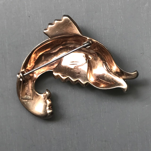 ANTHONY by Antonio Aquilino gold washed sterling silver fish brooch in gold wash with clear rhinestonesView View View Product #41702 All items in excellent vintage condition unless otherwise noted.