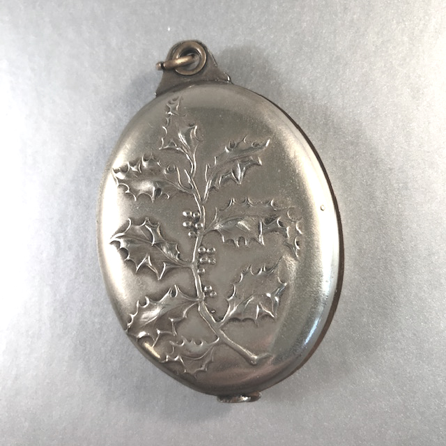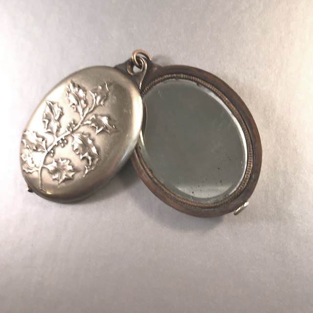 ART NOUVEAU Victorian MISTLETOE embossed mirror silver plated slide-open mirrorProduct #41226 All items in excellent vintage condition unless otherwise noted.