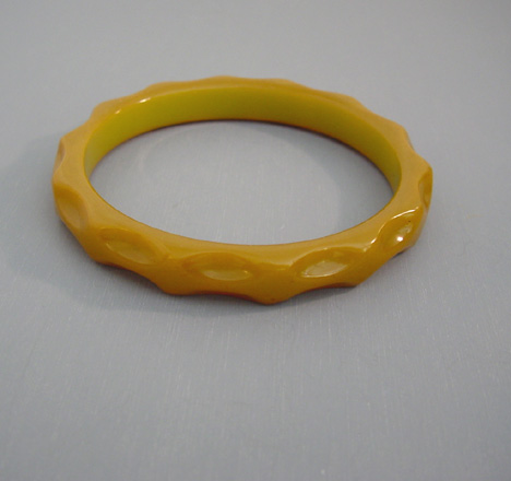 BAKELITE pea soup green carved and tumbled spacer bangleProduct #64503 All items in excellent vintage condition unless otherwise noted.