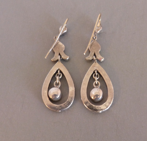 The larger center stones have the black dot in the bottom of each and each earring is marked with a lightly struck "sil" on the back.