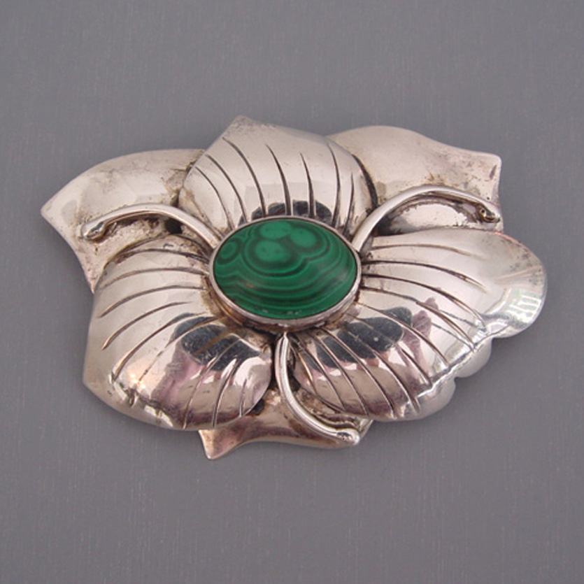 CAROL FELLEY 1988 sterling silver and malachite broochProduct #N36462 All items in excellent vintage condition unless otherwise noted.