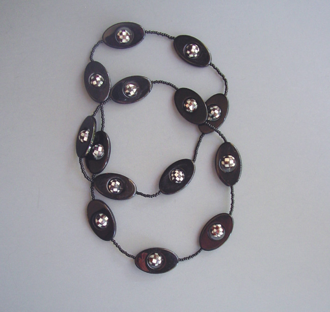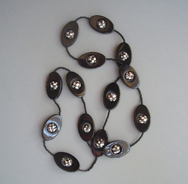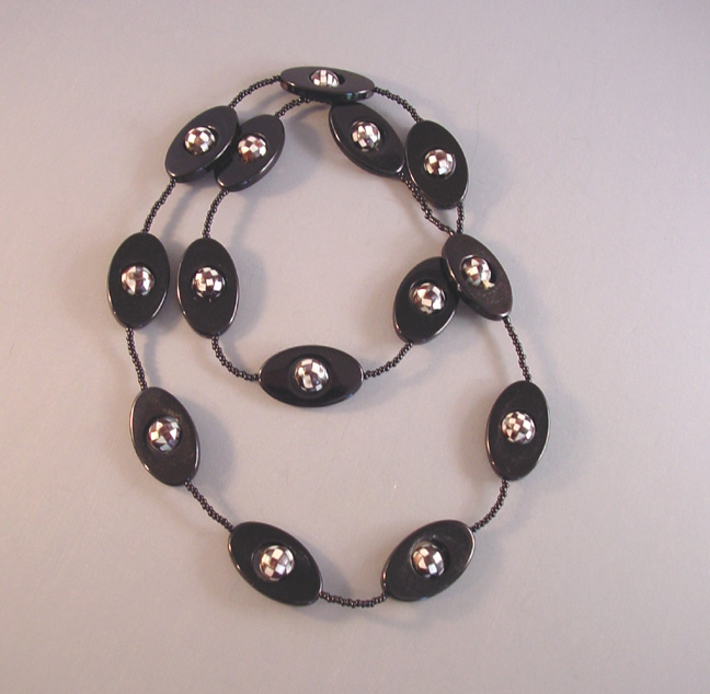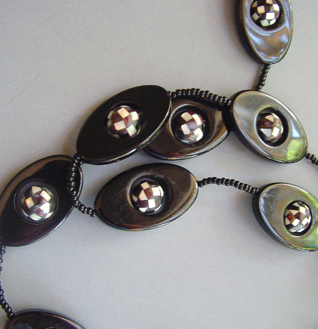 CHECKERBOARD Art Deco style black and mother-of-pearl necklaceView View View Product #38681 All items in excellent vintage condition unless otherwise noted.