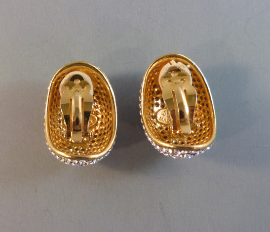 JARIN clear rhinestone pave earrings set in gold toneWhen I first saw these I thought they were by Ciner but the Jarin mark is very clear. View Product #K38578 All items in excellent vintage condition unless otherwise noted.