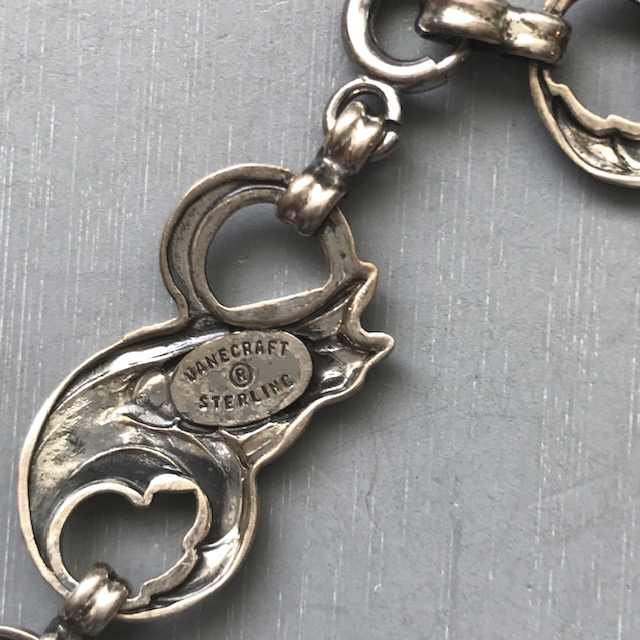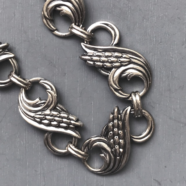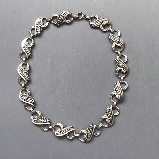 DANECRAFT sterling silver necklace with wheat sheaves and scroll designs on each link