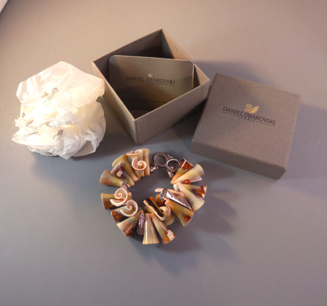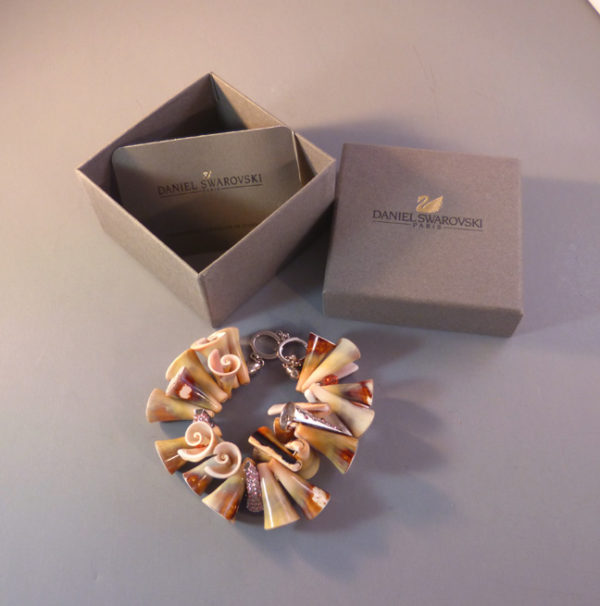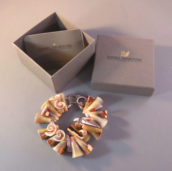DANIEL SWAROVSKI Brilliance sea shells bracelet with original box, rare and wonderfulThis group was made between 1989 and 2009. This is a very special and unusual bracelet and one you will not see often, and it is in excellent condition, never worn. We have abundant information about Swarovski jewelry on our Swarovski reference page and more on our reference page about Swarovski Christmas jewelry as well as lots of photos on both pages. View View View View Product #K39134 All items in excellent vintage condition unless otherwise noted.
