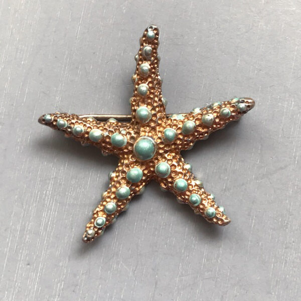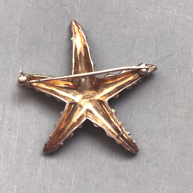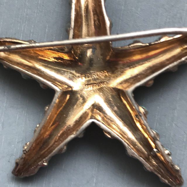 DEROSA aqua enameled starfish brooch in gold plated sterling silverProduct #42381 All items in excellent vintage condition unless otherwise noted.