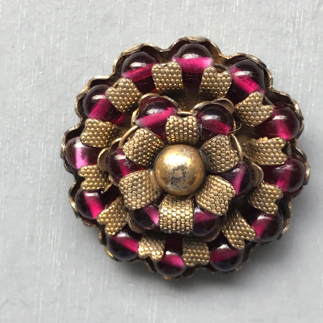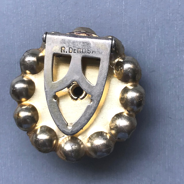 Description DEROSA dress clip set, one in pomegranate red and one in glowing blue. Both are set in a gold tone metal finish with the beads tucked into layered petals, 1-3/4". View View View View View Product #42558