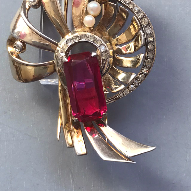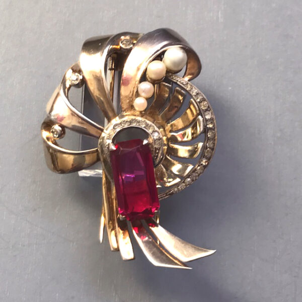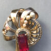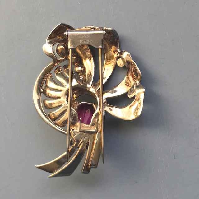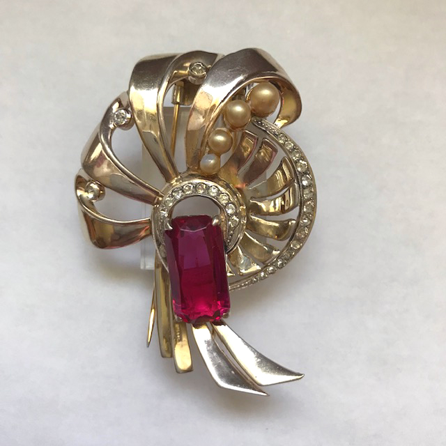 DEROSA elegant fur clip with a rose red rectangular rhinestone center and little clear rhinestones at the tipsView View View View View Product #42612 All items in excellent vintage condition unless otherwise noted.
