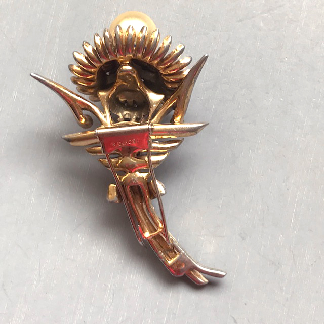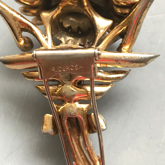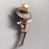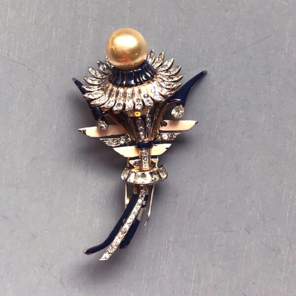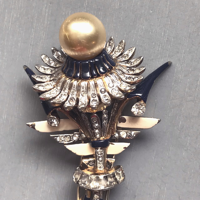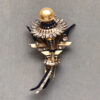 DEROSA flower fur clip with a luminous glass pearl on top. Decorated with clear rhinestones and enamel work in black and creamy whiteView View View View View Product #42380 All items in excellent vintage condition unless otherwise noted.