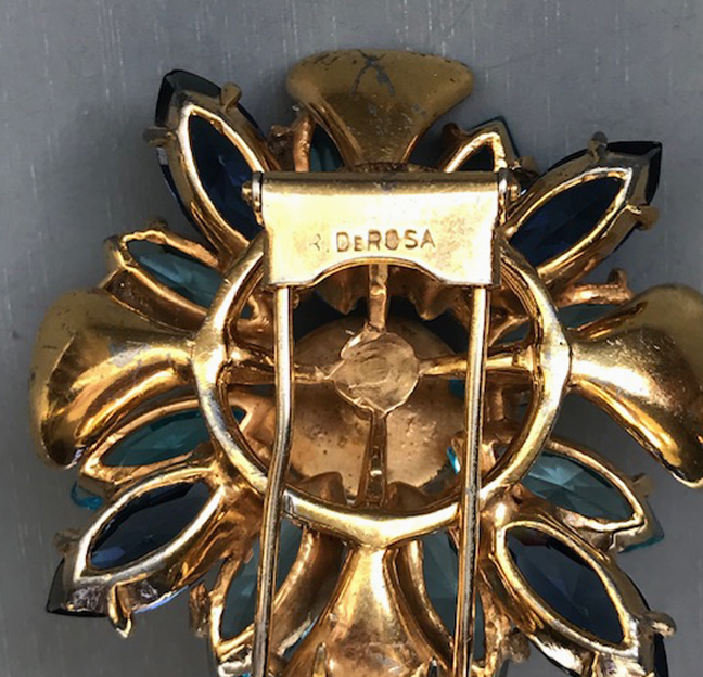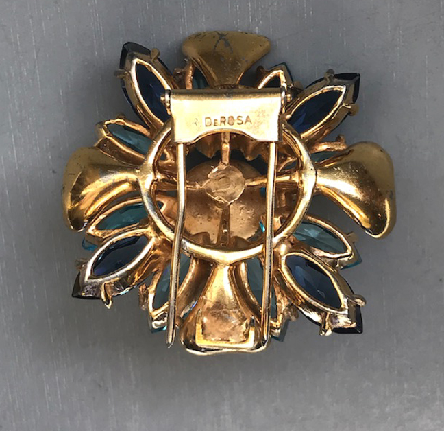 Marked "R DeRosa" on the back, it was made in the 1940s and is 1-3/4" across. It is also in wonderful condition, a real treat to find one like this! To read more about DEROSA jewelry click HERE for our reference page and gallery. View View View View View Product #42480