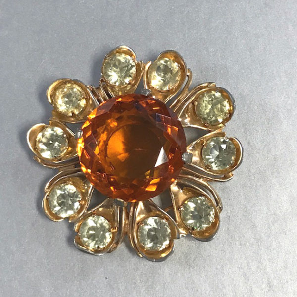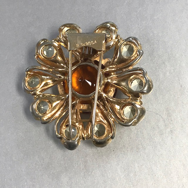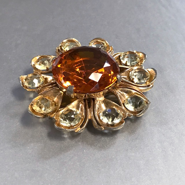 DEROSA fur clip with brilliant golden and yellow rhinestones set in gold plated petal shapesProduct #41520 All items in excellent vintage condition unless otherwise noted.