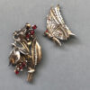DEROSA gold plated sterling silver butterfly brooch with clear and red rhinestones made in about 1948